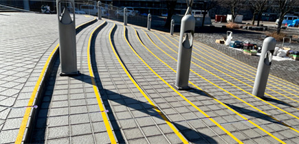 当社の滑り止め施工は、主に目立たせる滑り止めと美観を崩さない滑り止め、大きく分け2つの概念を元にご提案致します。目立たせる滑り止めとは、階段やスロープなど段差や勾配が存在する場所に視覚的に注意喚起を促す滑り止めです。主に段差識別表示などが前述に概要します。